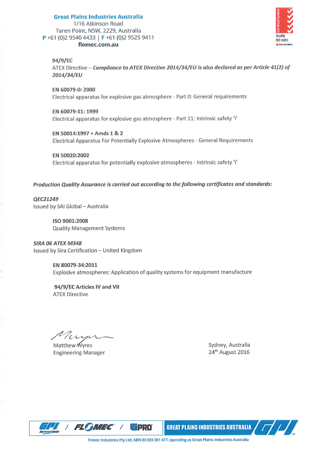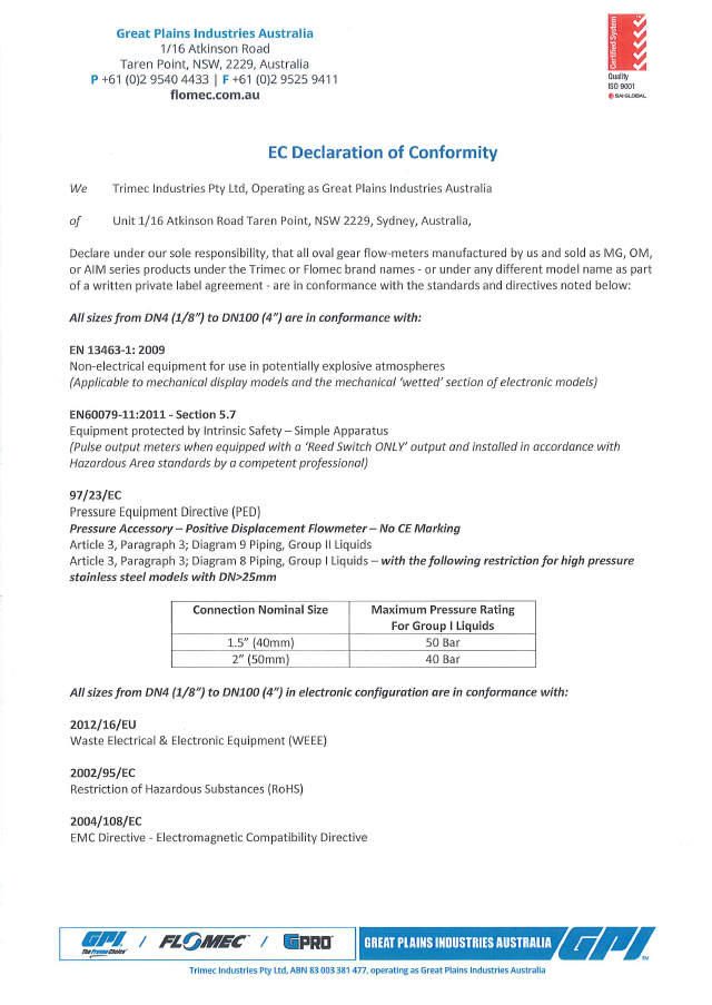 EC Declaration of Conformity OVAL GEAR PRODUCTS